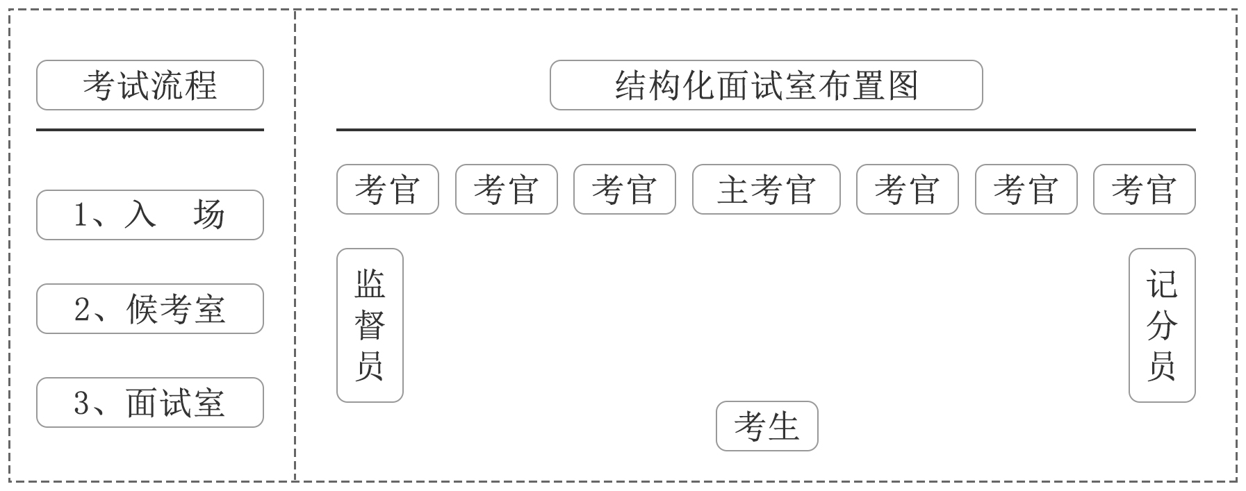 (2)各地分考場每個(gè)面試組由市統(tǒng)一選派4名考官,市派考官均在市級面試考官庫中抽簽確定;主考由各地公務(wù)員主管部門選派,并在面試當(dāng)天差額抽簽產(chǎn)生;其余2名考官由其他縣(市)區(qū)異地派遣或市統(tǒng)一選派。