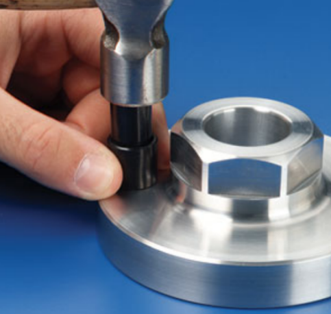 通過專用安裝工具,用榔頭敲擊使插銷固定鍵進入壁槽,工件內螺紋有損傷。
